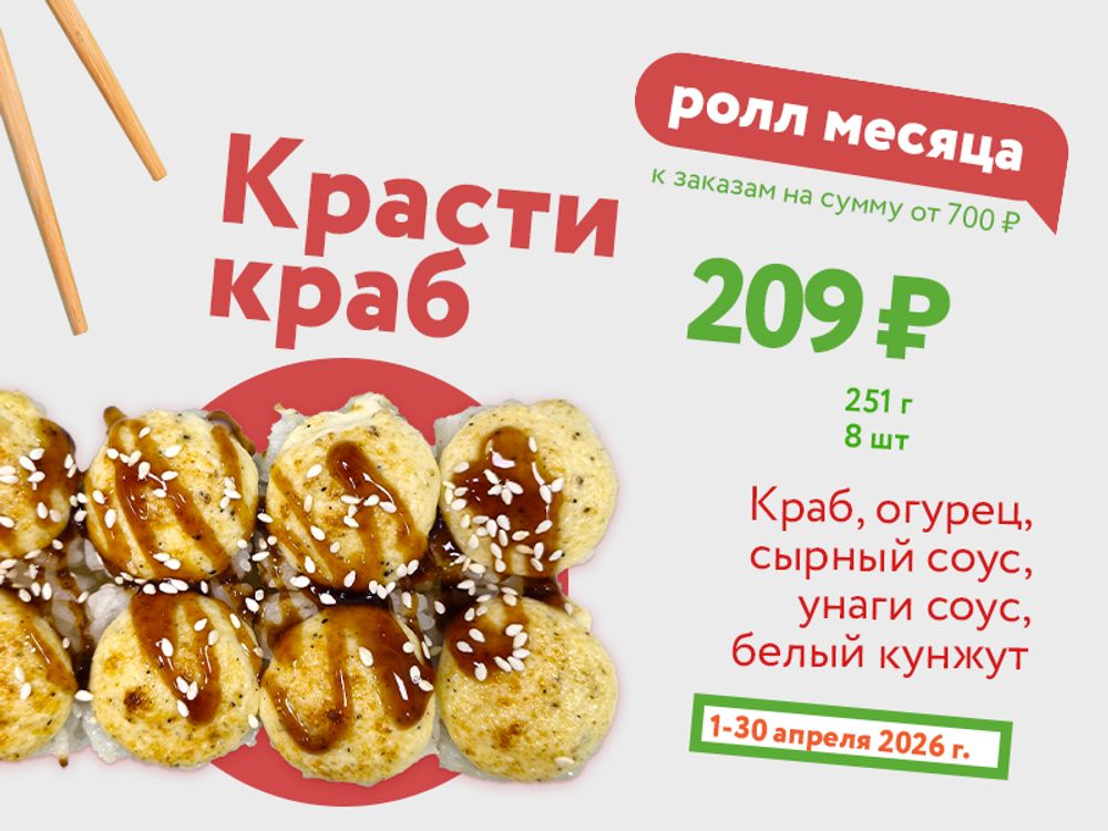 Краб, сырный соус, огурец, унаги соус, кунжут